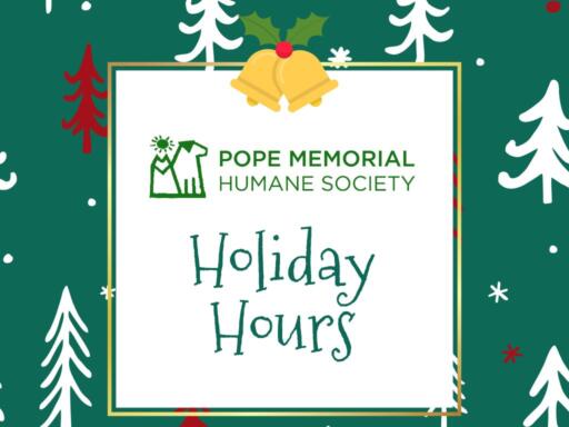 As we head into the holiday season, we want to share a quick update on adjusted hours at Pope Memorial Humane Society so you can plan ahead. Upcoming Holiday Hours While the shelter will be closed to the public on Christmas Day and New Year’s Day, our staff and volunteers will remain on-site every day to care for the animals. Thank you for planning ahead and for your continued support...Read More